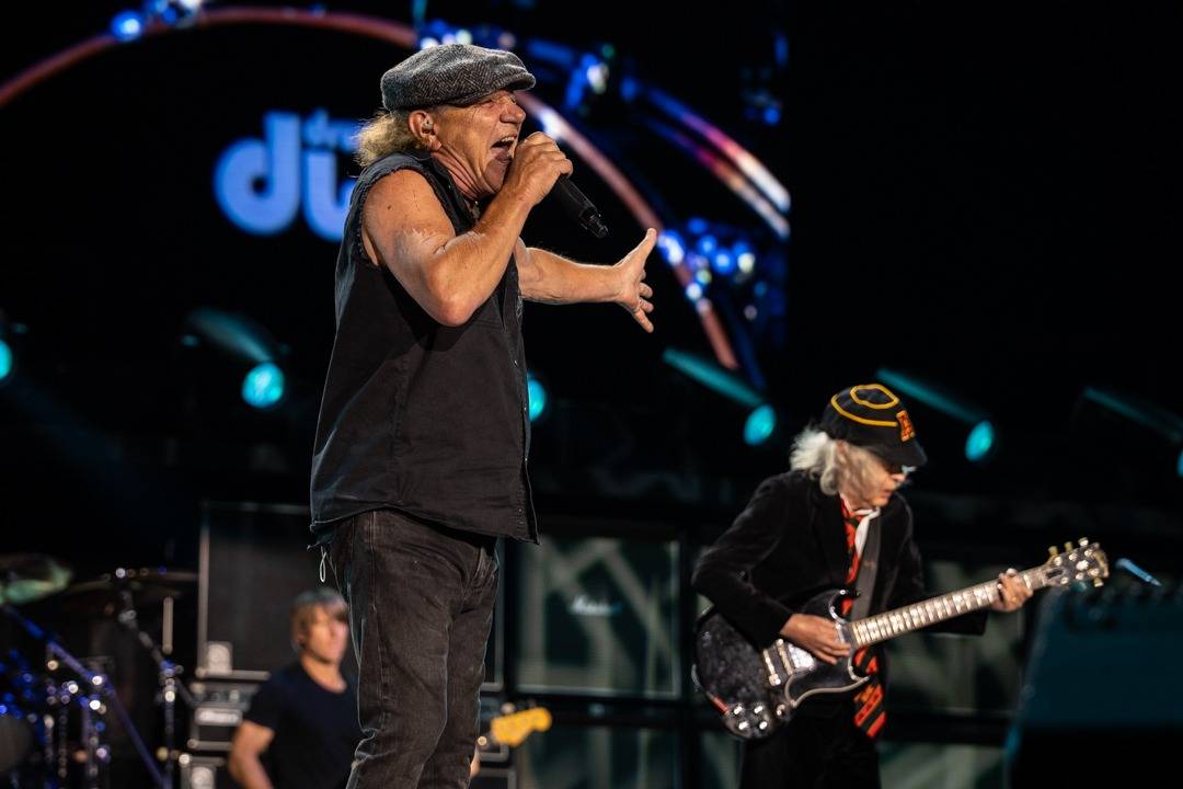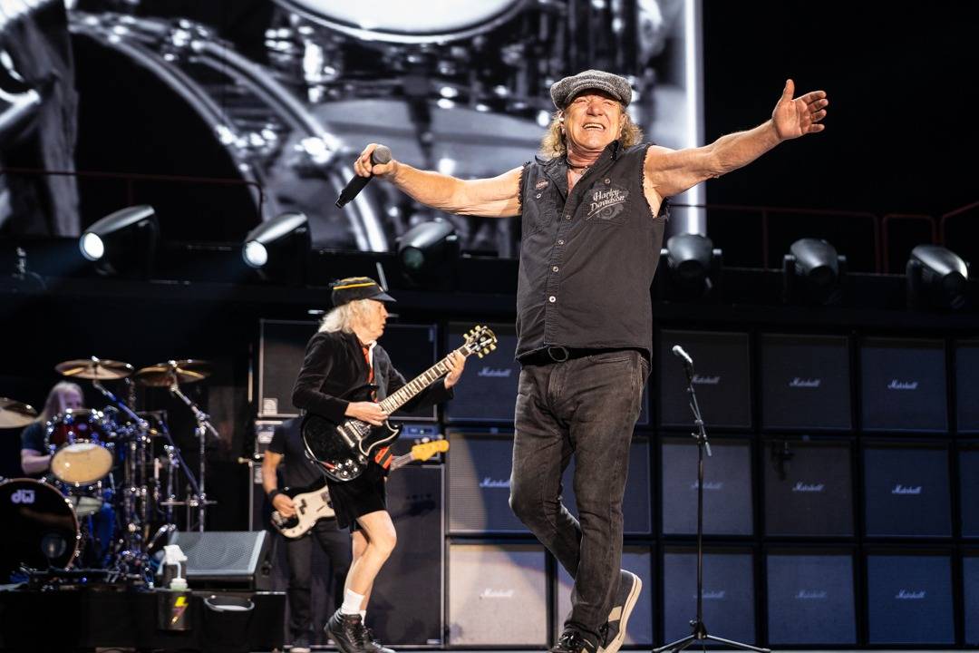 AC/DC Live in Düsseldorf 08.07.2025 Merkur Spielarena Brian Johnson Angus Young im Hintergrund