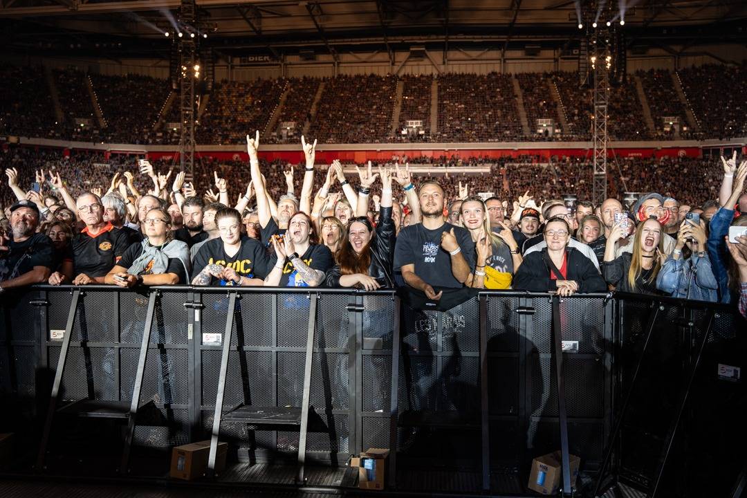 AC/DC Live in Düsseldorf 08.07.2025 Merkur Spielarena Fans vor der Bühne
