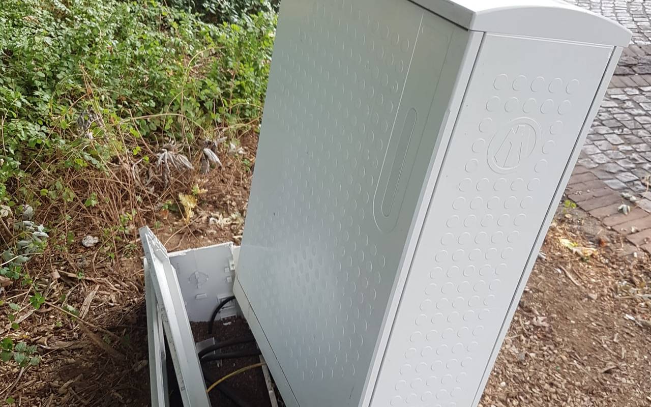 Nach Angaben der Stadtverwaltung ist hier der Zählerschrank der Straßenbeleuchtung bereits am 6. September mutwillig umgestoßen und dabei schwer beschädigt worden. Bereits am 17. Juli dieses Jahres musste derselbe Zählerschrank wegen eines vorherigen Vandalismusschadens instandgesetzt werden. Bei diesem Vorfall war neben dem Schrank auch die Verbindung zwischen Sockel und Schrank in Mitleidenschaft gezogen worden. Die Gesamtkosten für die Instandsetzung beider Vandalismusschäden belaufen sich auf rund 10.000 Euro.