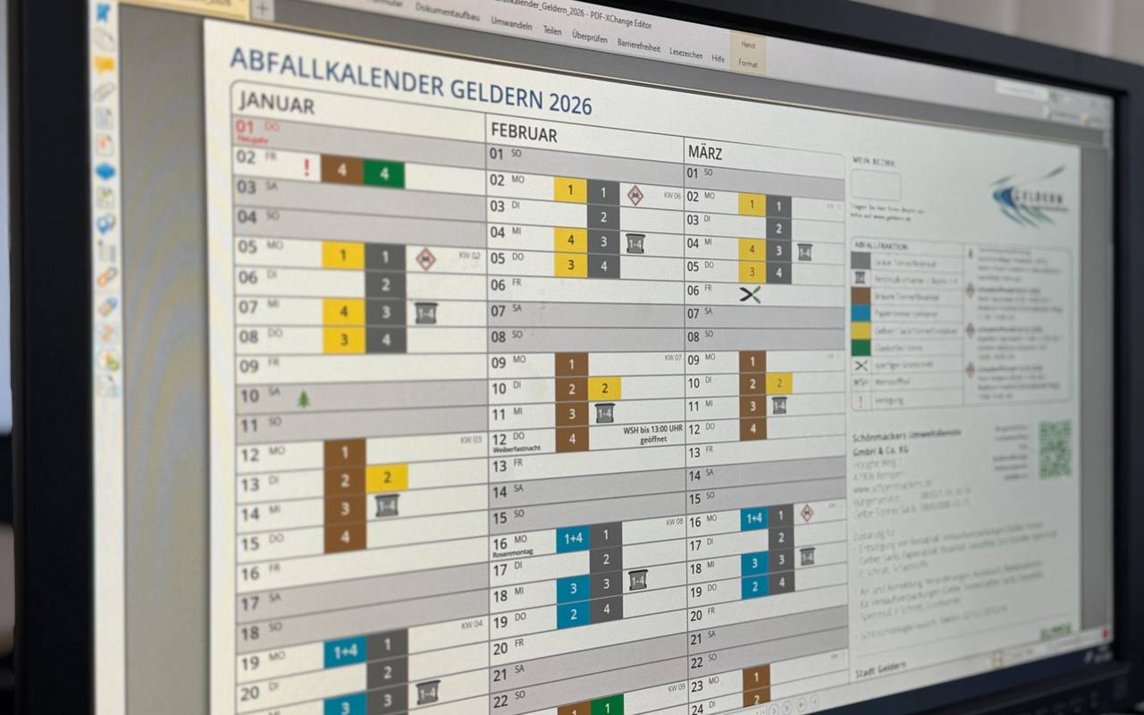 Ab sofort ist der Gelderner Abfallkalender für das Jahr 2026 wieder digital verfügbar. Darauf macht die Stadt jetzt aufmerksam. Zu finden ist er auf der Internetseite der Stadt Geldern.