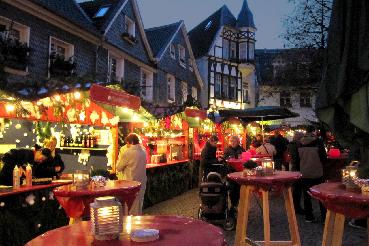 Monschau - Mitten in der Eifel ist die Chance außerdem hoch, den Weihnachtsmarkt in Monschau im Schnee zu erleben. Die Altstadt in Monschau hat mit ihren alten Fachwerkhäusern schon ohne Weihnachtsmarkt eine ganz tolle Atmosphäre. Mit all den Lichtern und Buden wird es aber noch mal eine ganze Schippe besser. Der Weihnachtsmarkt hat vom 29. November bis zum 22. Dezember nur an den Wochenenden geöffnet.