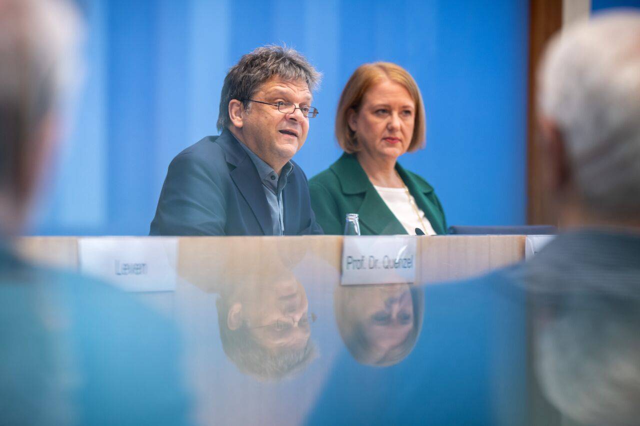 Studienleiter Michael Albert (l.) stellte mit Bundesfamilienministerin Lisa Paus (Grüne) die neue Studie in Berlin vor.