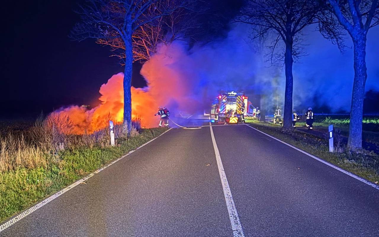 Das hat die Polizei im Kreis Kleve heute Nachmittag bekannt gegeben. Der Wagen des Mannes war auf gerader Strecke der Issumer Straße aus bislang unbekannten Gründen nach links von der Fahrbahn abgekommen und dort mit einem Baum kollidiert. Das Auto fing dabei Feuer und brannte komplett aus. Der Fahrzeugführer starb noch im Auto.