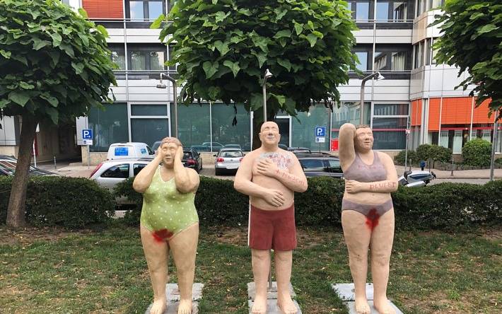 Erneut sind Figuren der Kunstreihe "Alltagsmenschen" am Niederrhein beschädigt worden.