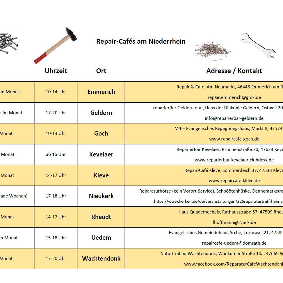 Ihr kennt weitere Repair-Cafés am Niederrhein? Dann lasst es uns per Mail wissen!