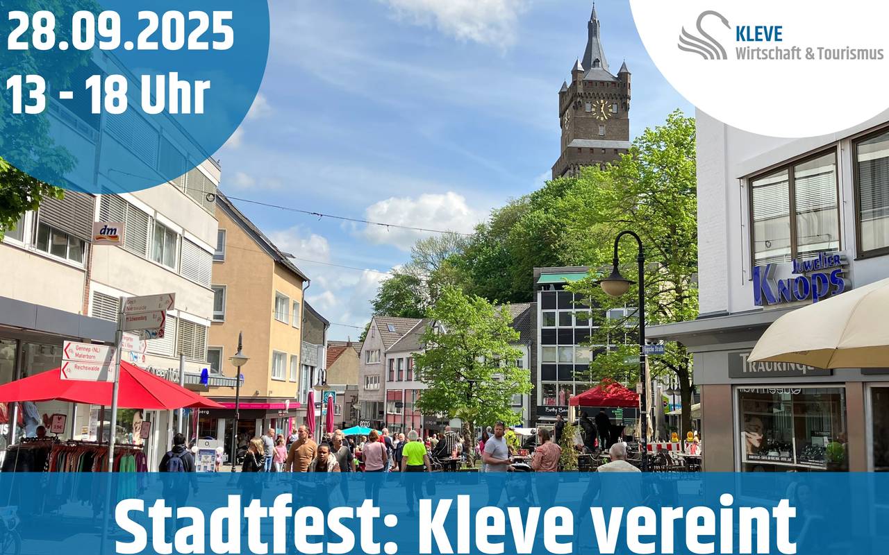 Außerdem haben die Geschäfte an dem Stadtfest-Sonntag auf, es ist ein besonderer Flohmarkt geplant und einiges für Kinder. Das Stadtfest "Kleve vereint" findet am 28. September von 13 bis 18 Uhr statt. Weitere Infos gibt es hier.